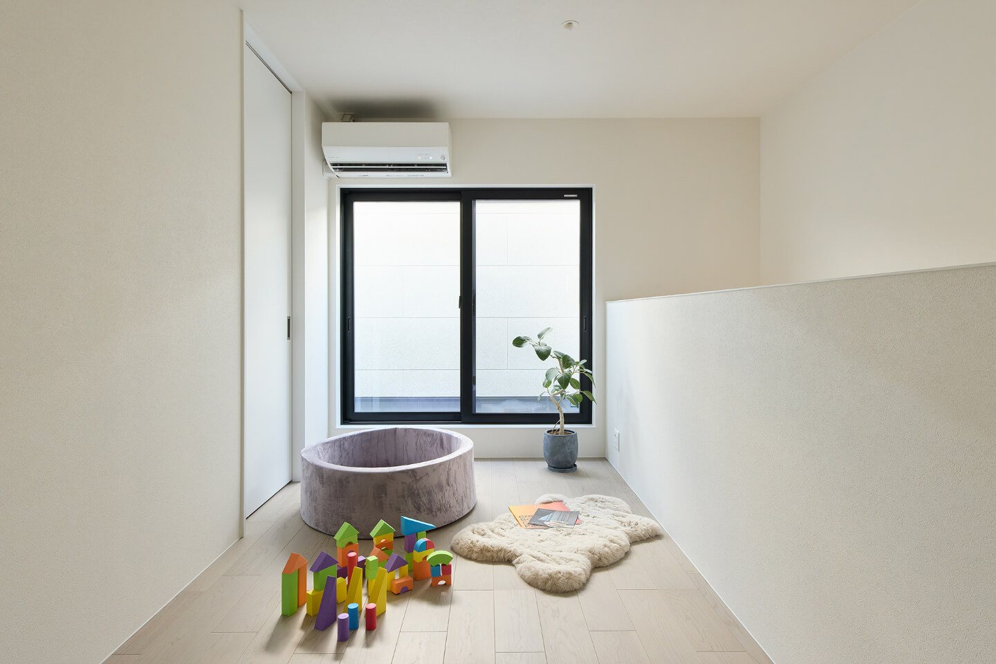 約6帖の2階セカンドリビングはお子様の遊び場所として、趣味部屋として、見せる収納にも。家族のライフスタイルにあわせて可変性を持たせた空間に。